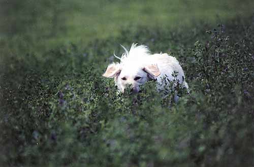 ....nun ist unser Tiffichen schon zum ersten Mal Mutter und hat sich zu einem sehr erfolgreichen Ausstellungshund entwickelt. Dabei hat sie nichts von ihrem Charme und Witz eingebüßt - ganz im Gegenteil. Selbstsicher, wie sie ist, braucht sie keine geschlossene Ausstellungsbox - sie liebt es, auch mal ihren Platz auf leisen Pfoten zu verlassen, um die anderen Aussteller in der Nachbarschaft zu besuchen. Klar, dass ihr dabei so einige Leckerchen zugesteckt werden. :-) Zu Hause am Zaun spielt Tiffy gern den großen Wachhund und kann sich dann mächtig aufregen. Sobald Fremde von Herrchen oder Frauchen herein gebeten werden, sind sie vor Tiffy nicht mehr sicher. Nach dem Motto: "Vorsicht, lieber Hund!" werden Besucher begeistert und stürmisch begrüßt. Bei Spaziergängen zeigt sich Tiffy sehr folgsam, vor allem wenn sie ohne ihre Schwester Tamaris unterwegs ist. Dann brauchen wir keine Leine für unser "Kätzchen". Eine ihrer großen Leidenschaften ist das Mäusebuddeln, aber sie macht auch gern kleine Kunststücke, wie sich drehen, Sitz machen, nach ins Gras geworfenen Leckerchen zu suchen, was Frauchen halt gerade so in den Sinn kommt. Und die wird ihre Mühe schon entsprechend honorieren! "Im Doppelpack" muss man etwas mehr auf die beiden achten - da kann es schon mal passieren, dass ein unvorsichtiger Hase zu einem wilden Sprint über die Felder animiert. Aber, beide kommen schnell wieder zurück und freuen sich über die Belohnung, wenn das Abrufen aus großer Distanz funktioniert hat. Mariette Hellinger, 30. September 2007