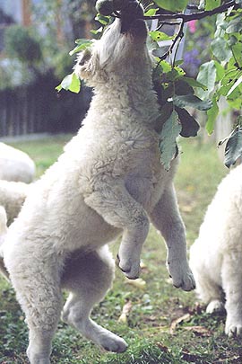 Wenn Tifarah heute auf leisen Katzenpfoten unterwegs ist und uns aus ihren schmalen, schrägen ägyptischen Mandelaugen anschaut, nennt Stephan sie oft das „Kätzchen“. Für ihr Alter ist Tifarah mit ihren heute etwa 16 Monaten ein keckes und vorwitziges Kuvaszmädel, das sich darum nicht minder lieb und folgsam zeigt. Nun, mit ihrem Selbstbewusstsein fällt es leicht, offen und freundlich zu sein, mit Zweibeinern wie mit Vierbeinern.