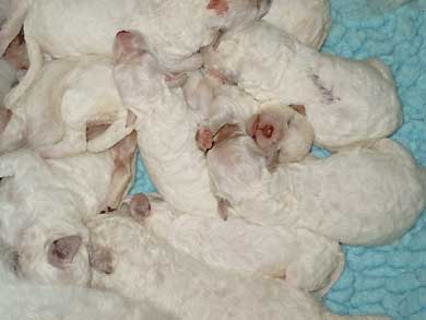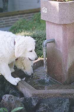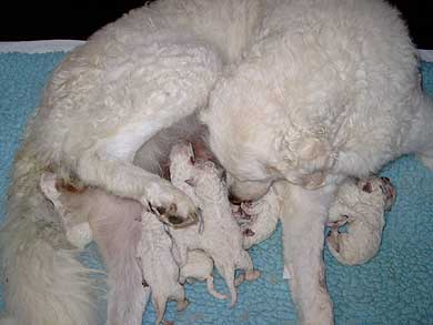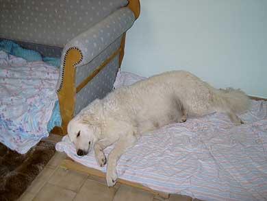 Nemesis vom Quecksilber, mit der wir für den Herbst letzten Jahres einen Wurf planten, war nach ihrer Hochzeitsreise nach Ungarn leider nicht trächtig. Unsere "Püppi" und ihr Versprochener, "Impi" alias Fehér-Morcos Imperiál, werden sich deshalb dieses Frühjahr wiedersehen! Nemesis ist die Mutter von Shadia-Jacínt vom Quecksilber, der Weltjugendsiegerin 2002, die außerdem der erfolgreichste Kuvasz 2002 war.