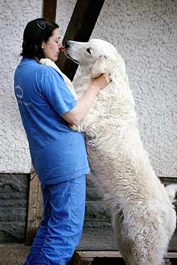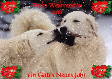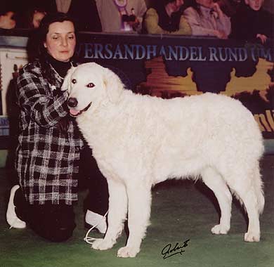 Ein Hund für die Ausstellung! Tigris ist sehr typvoll und hat hervorragendes Pigment - alle Krallen sind lackschwarz; Rachen, Lefzen, Augenlider schwarz pigmentiert, die Haut am ganzen Körper dunkelgrau. Seine Augen sind dunkelbraun, die Zähne perfekt. Für sein Alter hat er über ein überdurchschnittliches, raumgreifendes, federndes Gangwerk (er ist vorgeröngt, Röntgenbild kann gezeigt werden). Kopf und Ausdruck sind sehr rassetypisch. Kurz und gut: ein Hund für die Ausstellung. Tigris ist ein besonders lieber Junge, den wir nur in sehr gute Hände geben werden. Am liebsten wäre uns für ihn ein Platz mit Hundegesellschaft. Auf jeden Fall müssen die neuen Besitzer viel Zeit für ihn haben und ihm unbedingt den Kontakt zu Artgenossen (Spielstunden) ermöglichen. Mehr Informationen zu Tigris Eltern und Geschwistern finden Sie unter: *** Quillajas Kinder - Photos *** Shadia-Jácint - erfolgreichster Kuvasz 2003, KfUH Wie schon im letzten Jahr ist unsere Shadia wieder der erfolgreichste Kuvasz des KfUH geworden! Shadia-Jácint - zweiterfolgreichster Kuvasz 2003, KAH Shadia-Jácint vom Quecksilber wurde zweiterfolgreichster Hund 2003 im KAH, dem Klub für ausländische Hirtenhunde in der Schweiz. Im KAH werden 14 verschiedene Rassen betreut wie z.B. Puli, Pumi, Schapendoes, Komondor, Sarplaninac, Estrella Berghund usw. Für dieses Jahr planen wir einen Wurf mit Shadia-Jácint vom Quecksilber!