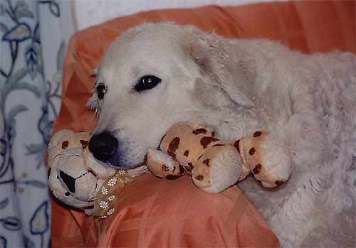Unsere Shadia wurde am 16.Juli 2007 künstlich besamt - am Tag des 11. Geburtstags von unserem "Schnürzelchen", und so hoffen wir, das dies ein gutes Ohmen ist. "Samenspender" war "Hunor vom Quecksilber" (HD A, geb. 1988, gest. 2001, Vater: Jamborhazi Kedves Cimbora HD -A, Mutter: Dschuma Malgrado L´ Invidia HD-A ). Hunor war ein Goldstück! Wesensfest, charakterstark, ein wunderbarer und sehr geliebter Familienhund und ein erfolgreicher Ausstellungsrüde. Kurz und gut: Hunor war ein Kuvasz, so wie man sich ihn wünscht.