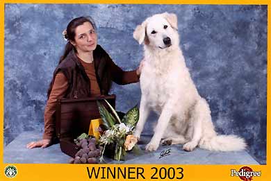 Shadia-Jácint - Amsterdam Winner 2003, Photo: Roberto Animal PhotographerShadia-Jácint - erfolgreichster Kuvasz 2002 und 2003 im KfUH und zweitbester Hund des Klubs für ausländische Hirtenhunde, SchweizShadia vom Quecksilber, Budapest 2002 |