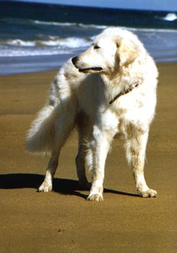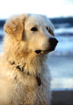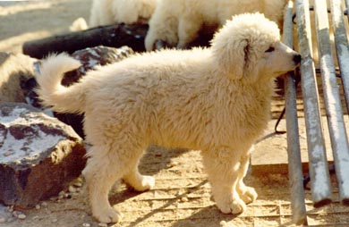 Kuvasz kannte ich nur aus einem Hundebuch, aus Jugendtagen, eine Schwarzweißzeichnung, eine kurze Charakterbeschreibung. Ein Hirtenhund, selbstsicher, nicht devot, ein wenig starrsinnig, ein klein bißchen stur. Der erste lebendige Kuvasz, dem ich begegnet bin, war eine Kuvasz-Hündin, Barany vom Quecksilber. Ein Bild von einer Hündin, souverän, selbstsicher und menschenfreundlich. Und wie der Zufall es wollte: Im November würde es Quecksilber-Welpen geben. Barany bin ich in Dortmund begegnet, auf der ersten Hundeausstellung, die ich je besucht habe. Mehr ein Spaß, sicher nicht in ernster Absicht, mir einen Hund anzuschaffen - wiewohl das ein Kindheits- und Jugendtraum war, aus der Zeit mit Nachbars' Rauhhaardackeln, vor allem der unvergessenen Tina, die durch alle Gärten streunte und an allen Grillabenden teilhatte. Der Rauhhaardackel, meint Mariette, ist ein Miniatur-Kuvasz. Vielleicht war es also doch kein Zufall. Fenseg-Juszuf wurde am 19. November 1986 geboren. Er ist beinahe 12 Jahre alt geworden, und ich habe die Entscheidung für diesen Hund und diese Züchter nie bereut. Stephan und Mariette haben uns viele gute Ratschläge und Tips gegeben und sich immer Zeit für uns genommen. Wie alle Quecksilber-Hunde hat Fenseg sein erstes Zuhause und seine Menscheneltern nie vergessen. Und sobald er seine Mutter Djuma traf, war er wieder Sohn und klein und jung - Djuma hielt auch ihre großen Kinder "in Z ucht und Ordnung". Fenseg ist an der Universität groß geworden, er hat mich in Seminare und Vorlesungen begleitet. Ein Gelehrter ist dennoch nicht aus ihm geworden, wohl aber er ein großer Menschenfreund - groß im wahrsten Sinne des Wortes, mit seinen 76 cm Stockmaß. Er war ein selbstbewußter Rüde, ein liebenswürdiger, verspielter Clown und manchmal auch ein kleiner Trotzkopf und Raufbold. Er hat uns viel Freude gebracht. Und er fehlt mir sehr. Nicht unerwähnt sei ein sehr kleiner Freund, Charlie, auch er ein Rauhhaardackel, der Hund meiner Mutter, der uns Anfang 2000 verlassen hat. Er war ein kleiner Hund mit einem großen Herz. Moritz, unser Rauhaardackel-Mix aus dem Tierheim, ist ihm ein würdiger Nachfolger. Irgendwann wird hoffentlich auch er einen Kuvasz-Freund oder eine -Freundin finden. Ih. Wojak