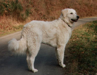 Geboren am 21. November 1989, HD-A, von Bajanduri Kun Aga, HD-A, und Dschuma Malgrado L'Invidia, HD-A, Luxemburgischer Champion. Jácint-Dschuma brachte mit Geri dessen erfolgreichste Nachkommen - L- und M-Wurf vom Quecksilber -, und sie ist die Mutter des N-Wurfs, mit so erfolgreichen Hunden wie Nesztor, Nemesis und Nadiza. Wir haben Jácint mit einem halben Jahr nach Dünfus zurückgeholt. Die sechs Monate ihrer Abwesenheit können nicht ganz einfach gewesen sein, und sie hat aus dieser Zeit eine leichte Skepsis fremden Männern gegenüber zurückbehalten. Aber wenn man ihr ein bißchen Zeit läßt, faßt sie Vertrauen. Bei Jácint geht die Liebe durch den Magen, ein Leckerchen kann deshalb sehr hilfreich sein, wenn man ihr Herz gewinnen möchte. Und wenn Freunde zu Besuch kommen, lacht sie über's ganze Gesicht, ein freudiges Grinsen, wie wir es noch bei keinem anderen Hund gesehen haben. Jácint ist heute 11 Jahre alt und immer noch voller Energie und in bester Konstitution - ganz wie ihre Mutter Dschuma.