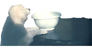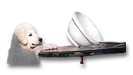 Lassen Sie sich davon nicht aus der Ruhe bringen, und geben Sie dem Hund nicht den Eindruck, daß er Ihre Vorbereitungen mit innovativem Futtertheater beschleunigen kann. Den Futternapf reichen Sie in einem Augenblick, in dem Ruhe herrscht; stellen Sie den Napf kommentarlos zurück, wenn Ihr Youngster im selben Moment durchstartet und nach dem Napf springt. Wie gesagt: kommentarlos. Sobald Ruhe herrscht - und bis dahin räumen Sie halt die Spülmaschine aus -, kommt der Napf zurück, das alles in aller Gelassenheit, ohne Schimpfen oder Schreien. Idealerweise, aber das haben Sie natürlich vorher geübt, sitzt Ihr Kuvasz vor dem nahenden Napf. Auch hier gilt: Überstrapazieren Sie nicht fahrlässig die Geduld Ihres jungen Hundes. Insbesondere in der Anfangsphase geben Sie sofort das Startsignal, wenn der Hund sitzt und nicht bellt oder brummelt.