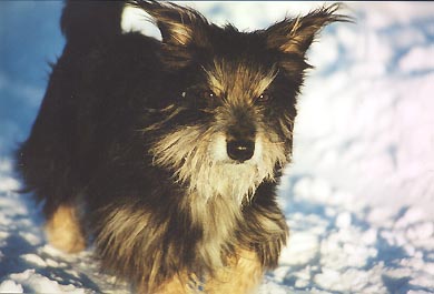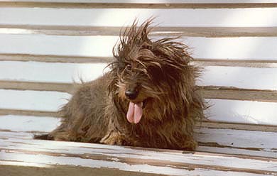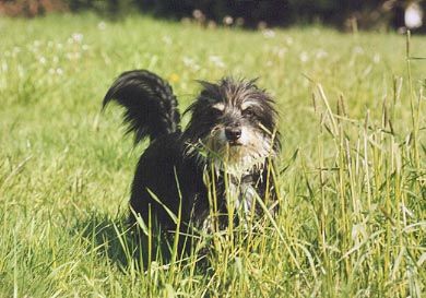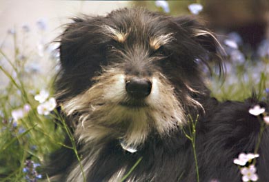 Als wir im Herbst 2000 ins Tierheim Münster fuhren, galt die Reise einer jungen weißen Schäferhündin, die ich dort eine Woche zuvor gesehen hatte. Die Hündin war bereits vermittelt. Enttäuscht gingen wir noch einmal die Gänge entlang. Hinter einer der Zwingertüren machte ein kleiner, ebenso pfiffiger wie zielstrebiger Rauhhaardackelmischling unüberhörbar auf sich aufmerksam: Er drückte sich ans Gitter, forderte Aufmerksamkeit und Streicheleinheiten und mehr davon... Meine Freundin und Kollegin Lizzy, mein Freund Thorsten und ich, wir alle drei waren uns spontan einig - dieser kleine Frechdachs trug ein Schild um den Hals, auf dem stand: "Mutters Hund"! Unseren Charlie, den Rauhhaardackel meiner Mutter, hatten wir ein Jahr zuvor verloren, nachdem er im Alter von bald 13 Jahren epileptische Anfälle bekommen hatte. Innerhalb von wenigen Stunden hatten sich die Abstände rapide verkürzt. Gehirntumor. Wie so viele Rauhhaardackel war Charlie eine ebenso anhängliche wie selbstbewußte und eigenwillige Persönlichkeit, die wir sehr vermißten. Nach abendlicher Familienrunde und Diskussion aller Für und Wider waren wir am nächsten Tag wieder in Münster, dieses Mal gemeinsam mit meiner Mutter. Wen nimmt es wunder, daß wir zwei Stunden später heimfuhren, nunmehr in Gesellschaft eines neuen Familienmitglieds. Ein großes Lob diesem Tierheim, das Menschen und Bewohnern regelmäßig gemeinsame Spaziergänge ermöglicht. "Drum prüfe wer sich ewig bindet"... Die Hunde bleiben körperlich, geistig und sozial beweglich, Vierbeiner und Menschen können sich ausreichend beschnuppern, ehe weitreichende Entscheidungen getroffen werden, und schließlich müssen auch diejenigen Hundeliebhaber, die keinen eigenen Tiere (mehr) bei sich aufnehmen können, auf vierbeinige Gesellschaft nicht ganz verzichten. Über Moritz' Vergangenheit war wenig zu erfahren. Offenbar war er von Polizei oder Ordnungsamt ins Tierheim gebracht worden, nachdem der vorherige Besitzer, ein älterer Herr, verstorben war. Verwandte oder Freunde waren nicht bekannt, jedenfalls keine, die sich um den Hund hätten kümmern wollen. Typisch Rauhhaardackel, ist auch Herr Rietzens ein spezieller Charakter. Seine neue Heimat hat er Rute und Ohren ganz hoch, voller Neugier und mit ungebrochenem Selbstbewußtsein auf das Genaueste erkundet. Seinem Selbstverständnis nach ein Herkules und Goliath, ist er gleichzeitig ein echter Schmusehund, temperamentvoll, aufmerksam und lernwillig, nähebedürftig und gelegentlich geplagt von Verlassensängsten. Unterwerfung ist ihm wesensfremd, Herr Rietzens besteht auf höflicher, liebevoller und sehr konsequenter Ansprache. Tagsüber leisten sich Herr Rietzens und unsere Mutter Gesellschaft, abends teilt Moritz Heim, Bett und Menschen mit seiner weißen "Heimsuchung", Samun. Vom weißen Riesen bedrängt, kann er schon mal ohrentäubend und trommelfellstrapazierend keifen und schnappen, immer sicher am Ziel vorbei. Samun läßt sich vom lautstarken Protest weder beeindrucken noch provozieren, er dreht rechtzeitig den Kopf zur Seite, wartet ein, zwei Minuten und nimmt sich im geeigneten Moment, was er keinesfalls haben sollte. Auf ihre eigene Art verstehen sich unsere beiden ungleichen Geschwister beeindruckend gut. Sie kennen und respektieren ihre gegenseitigen Grenzen. Auf der Hundewiese toben sie regelmäßig gemeinsam mit den beiden Nachbarshunden, der Gordon Setter-Lady Ela und dem schwarzen Labrador und Namensvetter Moritz, und all den anderen Hunden über die Wiesen und durch die Ruhr. Wieder daheim, ruht Samun auf Rietzens kleinem Hundesofa, während Rietzens sich im großen Hundekorb aalt. Und zur abendlichen Schmuse- und Streichelstunde kuscheln sie sich aneinander und genießen... Irmhild Wojak, August 2002