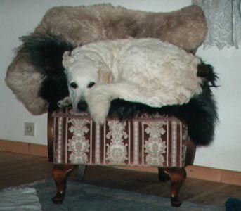 Unsere Püppi war ein besonderer Hund, und es fällt sehr schwer, Worte des Abschieds zu finden. Sie war eine ungewöhnlich fürsorgliche und liebevolle Hundemutter, und sie hat ihre Welpen mit viel "Sinn und Verstand" erzogen. Alle, auch die erwachsenen, die uns später in Dünfus besuchten, zollten ihr Respekt - etwas anderes wäre ihnen nie in den Sinn gekommen. Der Zutritt zu unserem Schlafzimmer, der war bis zuletzt ihr vorbehalten. Das wir ihr wichtig.