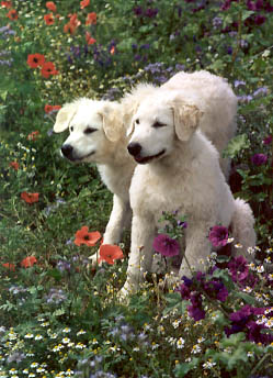 Geboren am 13. April 2001, von Quadragon vom Quecksilber, HD-A, OCD-frei, ED-frei, und Nemesis-Jácint vom Quecksilber, HD-B, OCD-frei, ED-frei. Shadia ist die Tochter unserer Nemesis und die Enkelin von Kátjusá und Jácint vom Quecksilber. Sie macht ihren beiden Großmüttern alle Ehre und ist eine vorwitzige und neugierige, charmante und selbstbewußte junge Kuvasz-Lady, die ihr Herrchen bereits mühelos um den Finger wickelt. Vom Erscheinungsbild und Typ kommt Shadia am meisten auf Kátjusá vom Quecksilber - vergleicht man die beiden anhand von Photos unserer Jüjü im gleichen Alter, ist die Ähnlichkeit geradezu frappierend. An Jüjü erinnert uns auch ihr Temperament und ihr dann wieder so sanftes Wesen, ihren stabilen Knochenbau verdankt Shadia ihrer Großmutter Kátjusá ebenso wie ihrem Vater Quadragon .