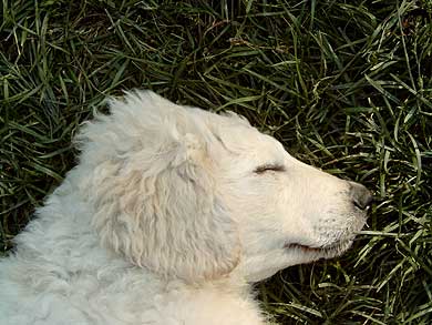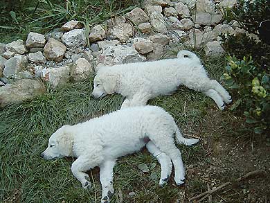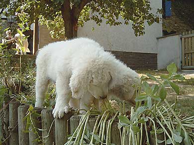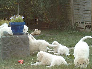 Die heißen Tage sind vorbei, allmählich wird es Herbst, und die Welpen genießen die kühleren Temperaturen. Die Kleinen sind jetzt 10 Wochen alt und natürlich bereits mächtig gewachsen. Wie immer in diesen Zeiten hat der Garten schon einige Federn lassen müssen. An allen Sträuchern und Ästen wird gezerrt und gerupft, Rennstrecken werden angelegt, Löcher gebuddelt... |