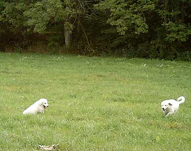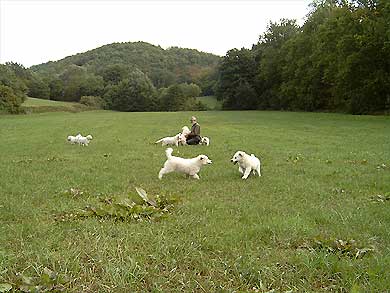 Bald sind wir 11 Wochen alt und schon ganz richtig erwachsen, ehrlich! Deshalb dürfen wir auch schon Auto fahren wie die Großen und draußen auf der grünen Wiese toben. Aufregend ist das schon, aber Angst kennen wir keine! So ein Tapetenwechsel ist eine tolle Sache, da kann man doch mal anderswo das Gras unsicher machen. Und wenn wir uns alle gleichzeitig in Bewegung setzen, dann werden Herrchen und Frauchen so richtig flott. Spassig, wirklich, wenn sie auf ihren zwei Beinen hinter uns her düsen... So ein Allrad-Antrieb ist da schon eine echte Weiterentwicklung, damit kann man es weit bringen ;-) Nun ja, anders als wir, wissen die Kleinen es noch nicht, aber bald geht es tatsächlich auf in die weite Welt. Langsam naht jetzt die schwere Zeit der Trennungen, als Züchter wissen wir das. Trotzdem ist es immer wieder schwer. |